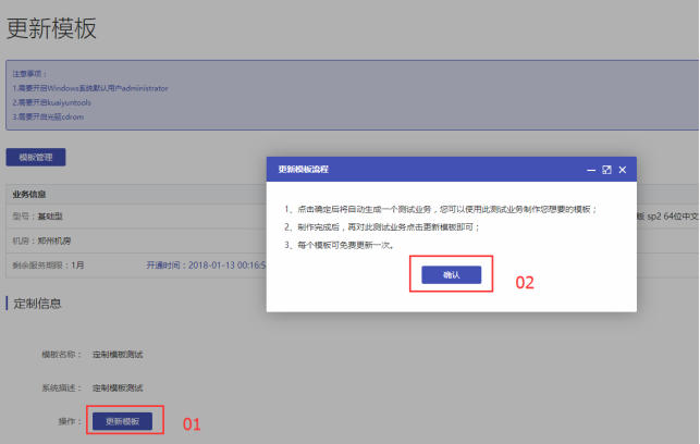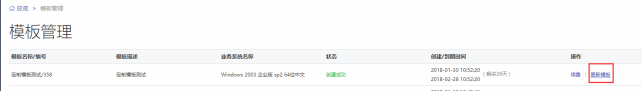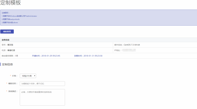 使用定制模板開通和重裝與正常的開通和重裝操作相同,需注意的是要找到對應(yīng)的定制模板進行開通和重裝(系統(tǒng)描述為定制模板頁面輸入的模板簡介),如下圖: