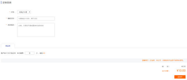1.點擊模板列表頁的“續(xù)費”按鈕,進入續(xù)費頁面,如下圖: