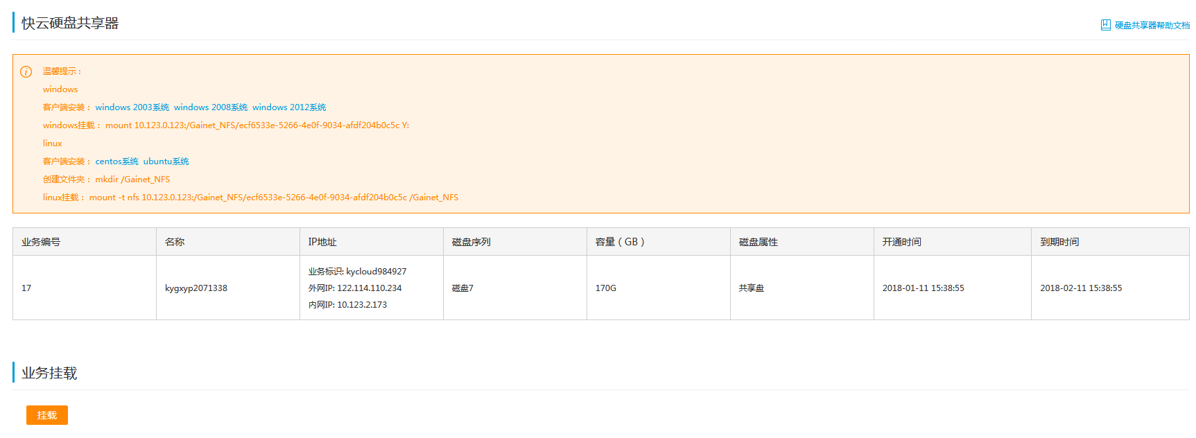 掛載成功在已掛載信息上會(huì)出現(xiàn)把該共享盤已經(jīng)掛載上的服務(wù)器信息
