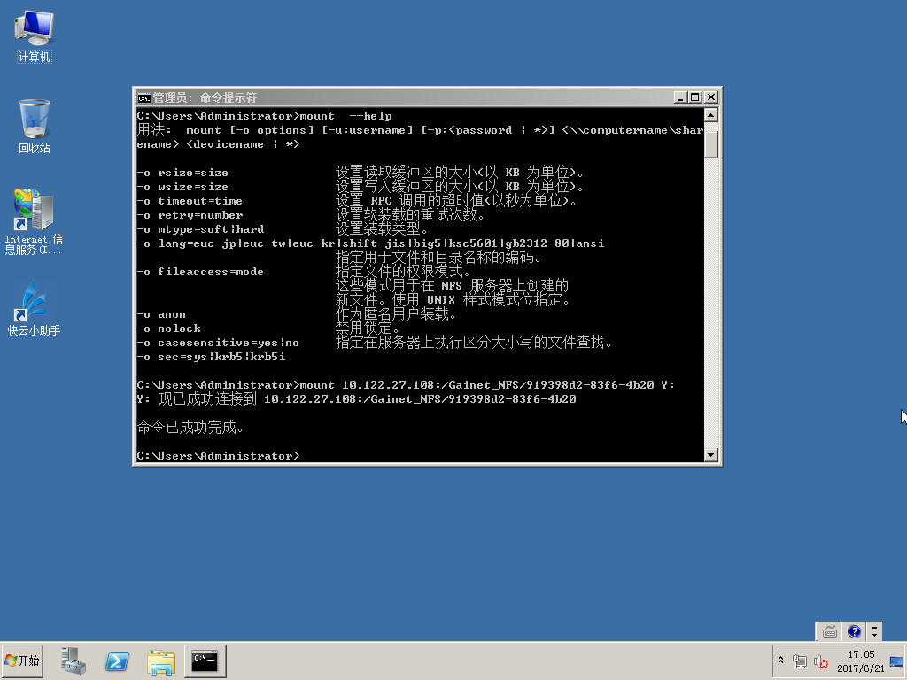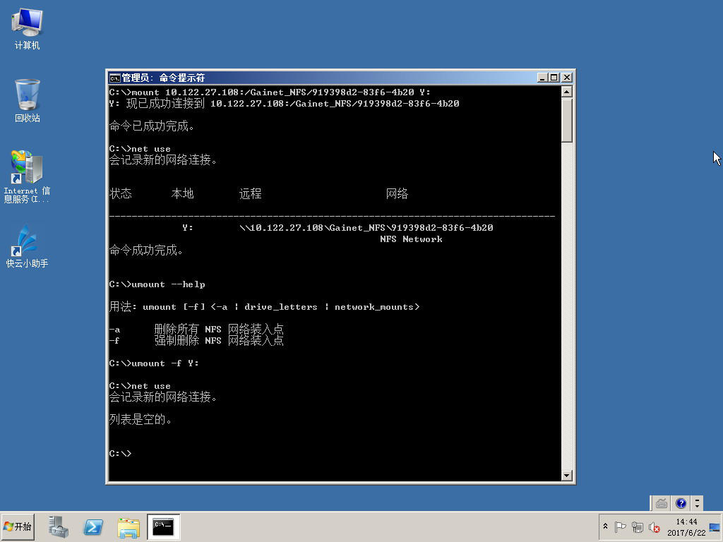 命令:mount 10.122.27.108:/Gainet_NFS/919398d2-83f6-4b20 Y: