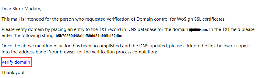 最后點擊郵件中的驗證鏈接,點擊“verify domain”(如下圖),