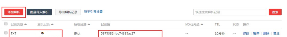 設(shè)置特定TXT記錄值來驗證域名有效性。