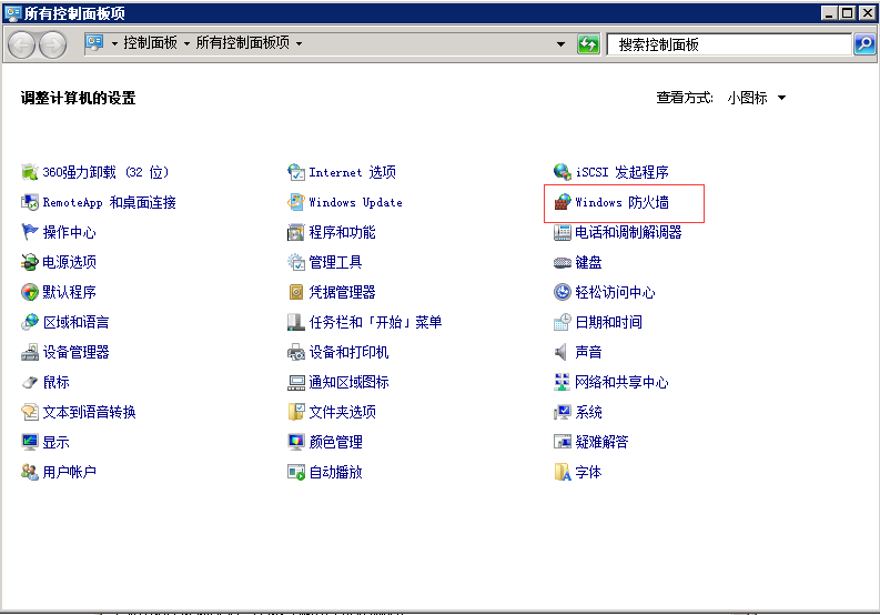 打開控制面板,打開windows防火墻