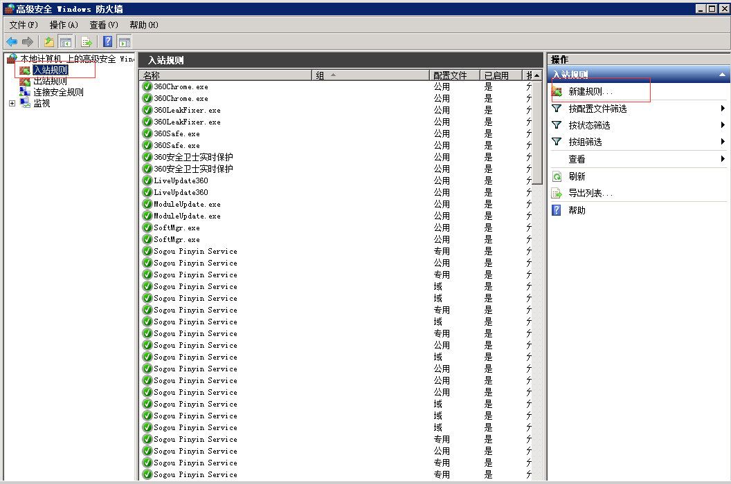 選擇入站規(guī)則,新建規(guī)則