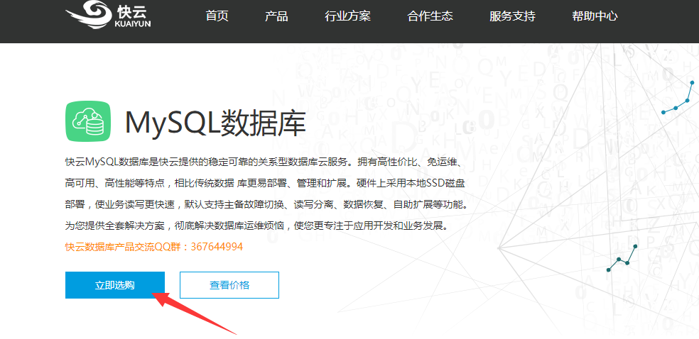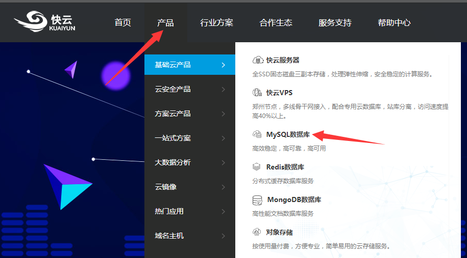 2、選擇“產品”--“MySQL數據庫”