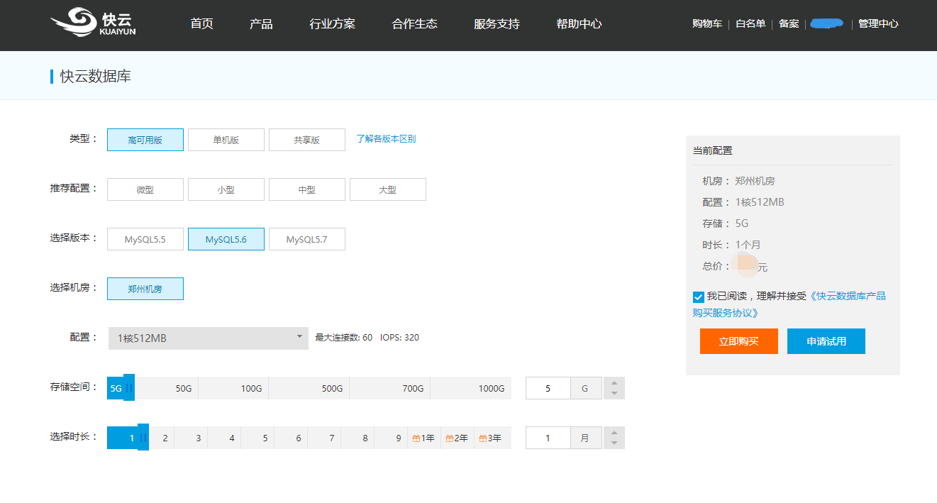 二、開通快云數據庫