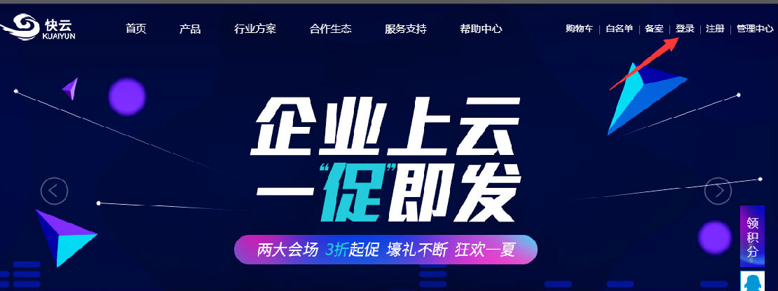 1、登錄到快云官網:https://www.kuaiyun.cn