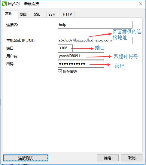 2)、輸入連接名,數據庫連接地址,端口,用戶名,密碼。