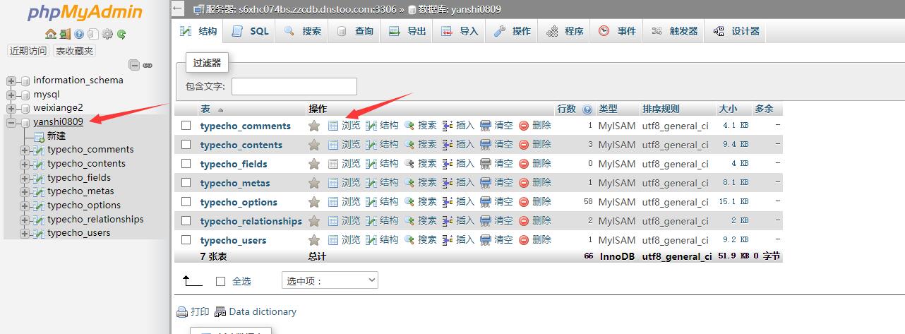 4)、雙擊數據庫名,打開數據庫,即可看到下面所有的表,打開表可以瀏覽和修改表中的數據。