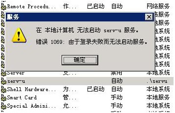 為了安全,我公司SERVU軟件是設置獨立的賬戶運行,如果用戶不是太了解刪除了我們建立的SERVU這個用戶或者改了密碼就會造成軟件不能正常啟動,如下圖
