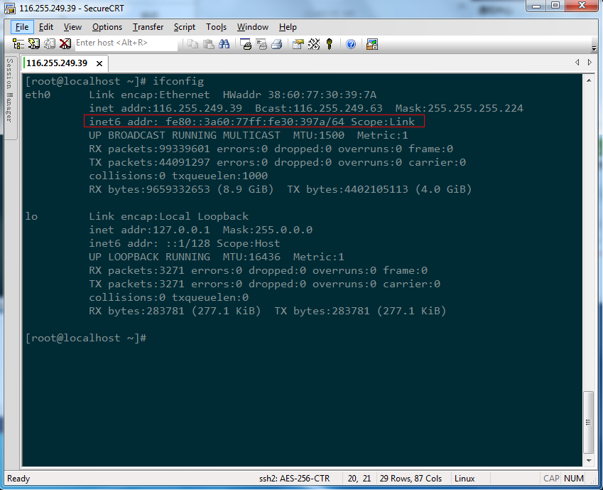 輸入ifconfig查看系統(tǒng)已支持IPv6。