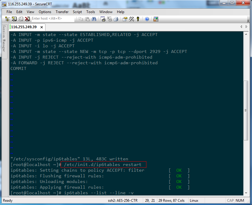 c) 重啟IP6TABLES 服務(wù)。/etc/init.d/ip6tables restart。