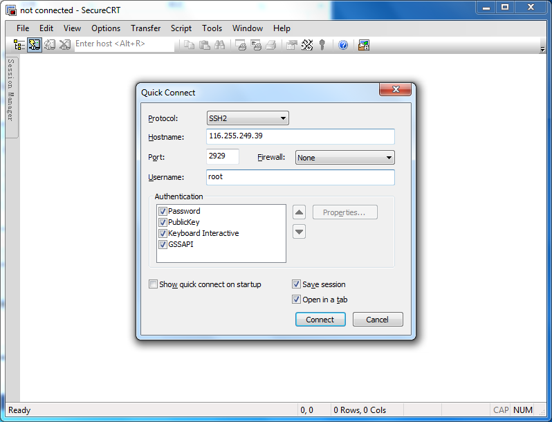 具體操作打開SecureCRT軟件點(diǎn)擊快速連接輸入服務(wù)器IPv6地址、端口、用戶名,次點(diǎn)擊連接,輸入密碼,確認(rèn)登錄服務(wù)器。