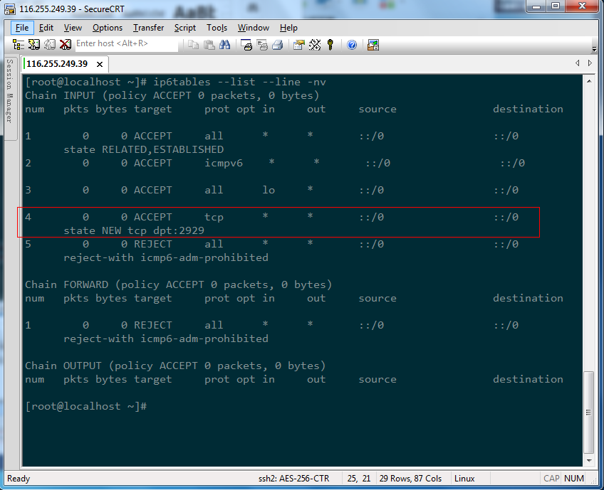 -A INPUT -m state --state NEW -m tcp -p tcp --dport 2929 -j ACCEPT