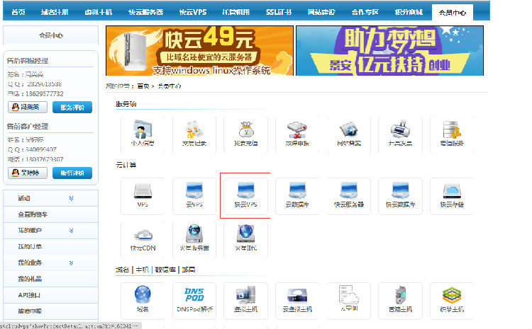 選擇快云vps,就來到快云vps的自助管理平臺(tái)了,操作到這步,我們離成功已經(jīng)不遠(yuǎn)了,如圖2所示: