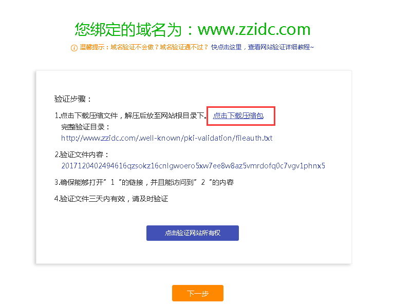 第一步:下載驗證文件“點擊下載壓縮包”,將解壓后的文件放置0595cq.com網(wǎng)站跟目錄