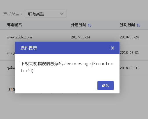 二、點擊下載證書提示失敗