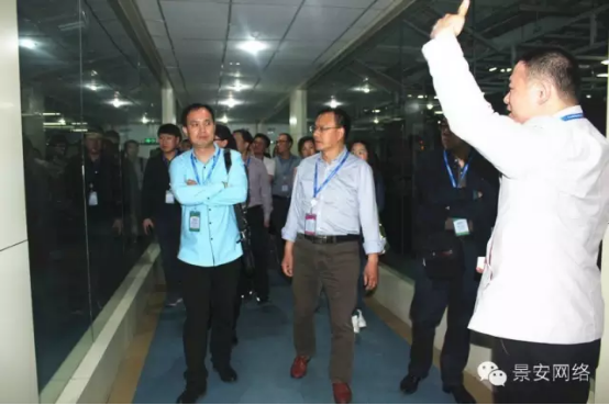 景安網(wǎng)絡(luò)副總經(jīng)理顧深偉帶領(lǐng)嘉賓參觀景安互聯(lián)網(wǎng)數(shù)據(jù)中心