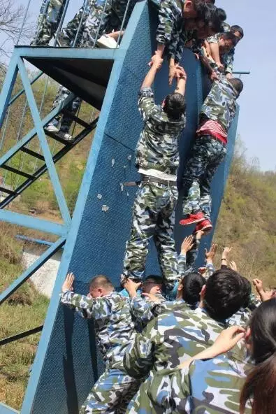 面對一面高達4.2米的逃生墻,集體驚呼不可能翻越。在教練下達15分鐘內(nèi)要全部逃生的命令后,小伙伴時間沖到墻下,搭起人梯。秉著不拋棄、不放棄,團結(jié)一心、全力以赴的信念,大家只用了10分鐘全部人員成功逃生。
