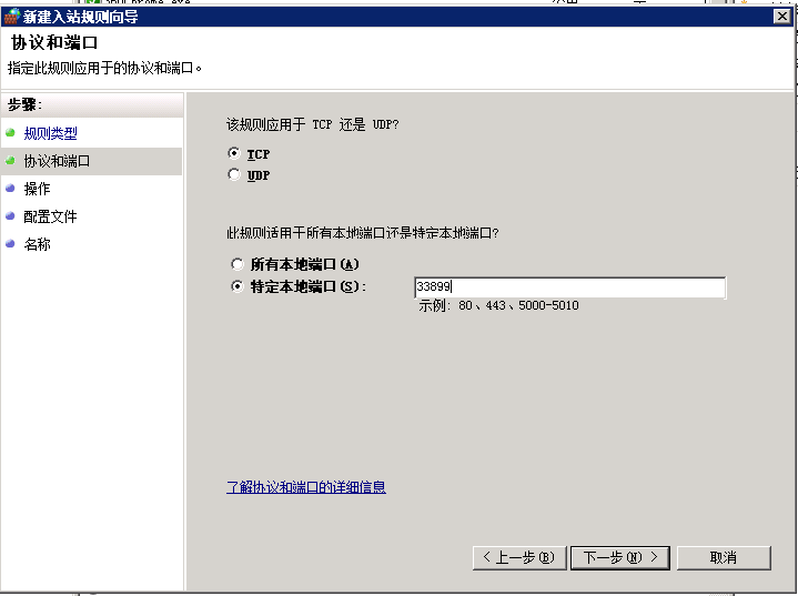 協(xié)議和端口選擇tcp下的特定本地端口33899