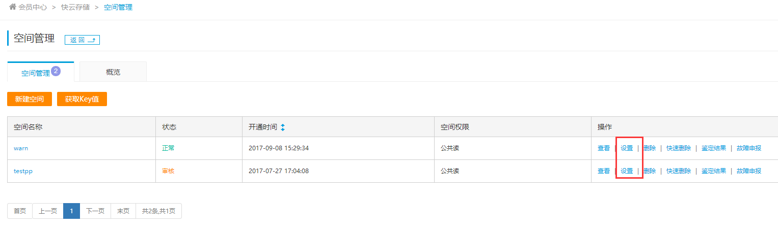 2)進入空間管理,找到需要綁定域名的空間,點擊該空間后面設置