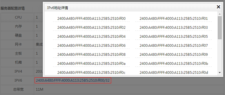點擊右側服務器詳情查看IPv6地址、網(wǎng)關