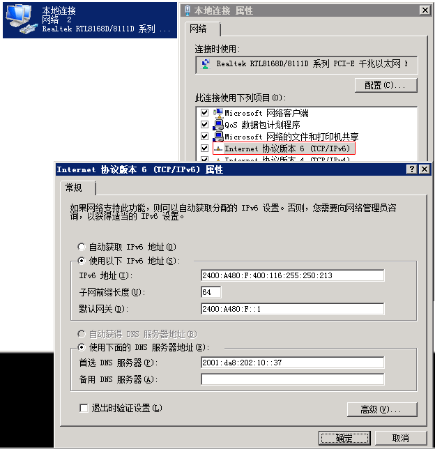 IPv6地址分配成功