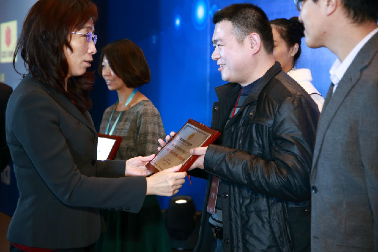 (工業(yè)和信息化部通信發(fā)展司副司長陳家春為景安網(wǎng)絡(luò)副總經(jīng)理顧深偉頒發(fā)獎(jiǎng)牌)