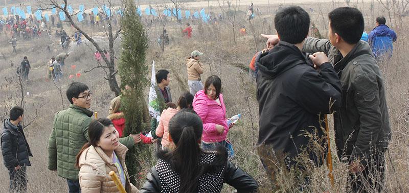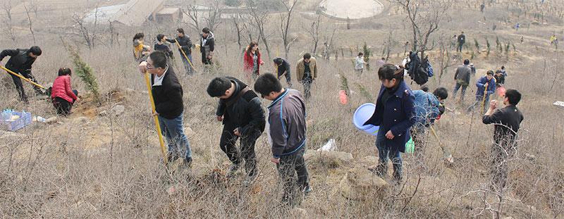 2014年3月8日上午在滎陽萬山植樹區(qū)展開植樹節(jié)社會(huì)公益活動(dòng)。當(dāng)日春風(fēng)吹拂,陽光照耀,拿著鐵釬、鐵鍬、水桶等工具,三人一組,有的揮鍬鏟土,有的扶苗填坑,有的踏土夯苗,有的澆灌樹苗,干得熱火朝天……