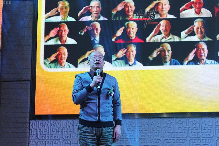 河南省關(guān)愛老兵志愿者團(tuán)隊負(fù)責(zé)人袁銀龍為現(xiàn)場來賓講述“老兵”故事