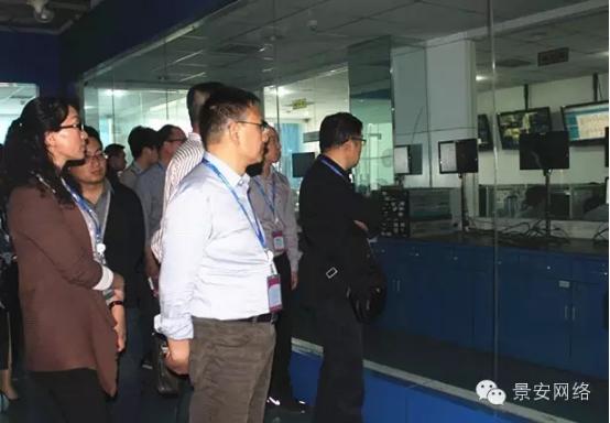 景安網(wǎng)絡(luò)副總經(jīng)理顧深偉帶領(lǐng)嘉賓參觀景安互聯(lián)網(wǎng)數(shù)據(jù)中心